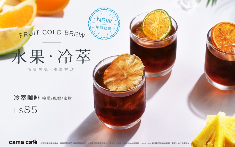 歷時半年,走訪台灣各產地。嚴選台灣果乾、果汁,搭配肯亞AA冷萃咖啡,推出三款爽口又消暑的「水果冷萃咖啡」。包含: